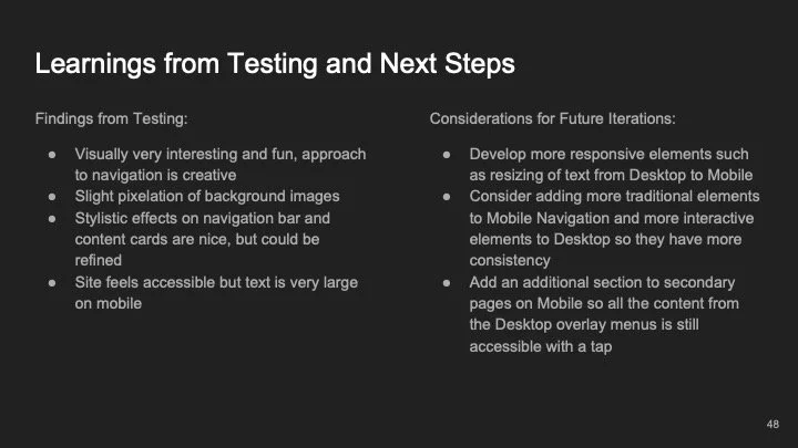 High-fidelity desktop and mobile website prototypes and documentation of the design process.